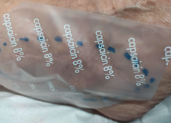 The management of localised neuropathic pain is complex. One of the therapeutic options used is the topical application of capsaicin at high doses of 179 mg (8%) in the form of a patch. The high local concentration of capsaicin produces desensitisation of transient receptor potential vanilloid subtype 1 (TRPV1), which reduces pain sensation.