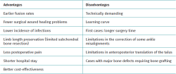 Another advantage of arthroscopic ankle arthrodesis (AAA) is the preservation of the fibula, increasing stability of fusion, and allowing future scenarios of conversion to an ankle prostheses in selected cases(6) (Table 1).