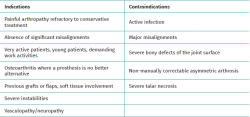 The contraindications are the same as for any other surgical arthrodesis procedure(7). The presence of active infection is considered an absolute contraindication. It should be noted that arthropathies with supra- or infra-malleolar angular deformities requiring correction of the mechanical axis are contraindications for in situ arthrodesis if the latter is to be performed as a stand-alone procedure.