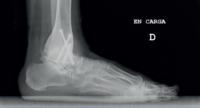 Vicent et al. también son partidarios de realizar una artrodesis tibioastragalina en correcta posición si la SA esta íntegra, porque la calidad de la marcha y la calidad de vida del paciente respecto al dolor mejoran ostensiblemente, incluso superados los 5 años desde la cirugía inicial de artrodesis(9).