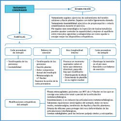 - PCV no neurológico: el tratamiento se basará en la combinación de una osteotomía valguizante y de una osteotomía dorsiflexora de M1, acompañada o no del tratamiento de la inestabilidad del tobillo o tendinosis de los peroneos. Las transferencias en estos casos tienen una aportación menor, ocasionalmente precisan una transferencia de Jones.