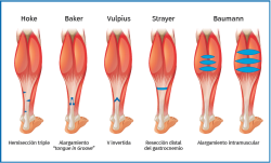 Ante una prueba de Silfverskiöld positiva, se recomienda la liberación proximal. Si se observa una contractura en equino en todo el ROM de la rodilla, está indicado un alargamiento del tendón de Aquiles(3). Cuando exista una moderada resistencia a la dorsiflexión, se recomienda la técnica de Strayer. Ante una alta resistencia con acortamiento leve: tenotomías percutáneas (realizaremos 2 cortes mediales y 1 lateral); y con un acortamiento severo, plastia en Z(5). El alargamiento está contraindicado si el talón está en neutro o si existe un aumento del calcaneal pitch secundario a debilidad del Aquiles(1). En el caso de PCI, hay que descartar pseudoequino del pie debido a la flexión de la rodilla. Un alargamiento del tendón de Aquiles producirá una pérdida de estabilización y propulsión para la marcha, verticalización del calcáneo y empeoramiento de la deformidad(5).
