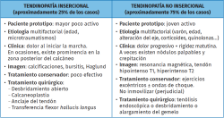 Mientras que la tendinopatía insercional se produce en la propia inserción del tendón en la tuberosidad mayor del calcáneo, la tendinopatía no insercional se origina a entre 2 y 6 cm de la inserción distal en una región anatómica de relativa hipovascularidad(4) y, por ende, más propensa a sufrir lesiones.