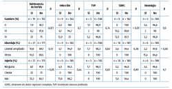Tabla 3. Relación entre los antecedentes de depresión/ansiedad, estado de las partes blandas al ingreso y las complicaciones
