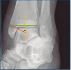 Es de gran importancia reconocer las lesiones de la sindesmosis para establecer el tratamiento adecuado. Sin embargo, la lesión de la misma puede no ser aparente radiológicamente, de ahí que existan multitud de índices y pruebas clínicas para ponerla de manifiesto(14,15). Hay 4 medidas radiológicas de obligada realización: el espacio claro tibiofibular (ECTF, que se considera normal si es menor de 5 mm o 6 según Zalavras y Thordarson(16) y es poco dependiente de la calidad de la radiografía), el solapamiento tibiofibular, el espacio claro medial y el ángulo talocrural.