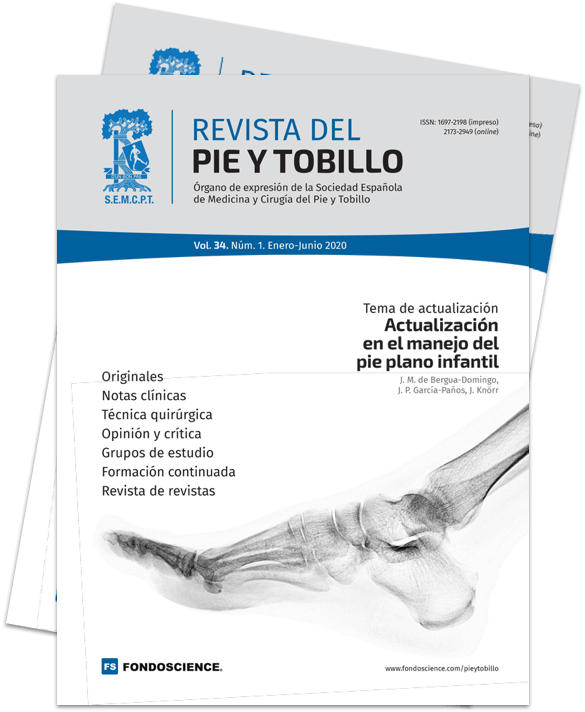 Revista del pie y tobillo está distribuida bajo una licencia de Creative Commons Reconocimiento-NoComercial-SinObraDerivada 4.0 Internacional.