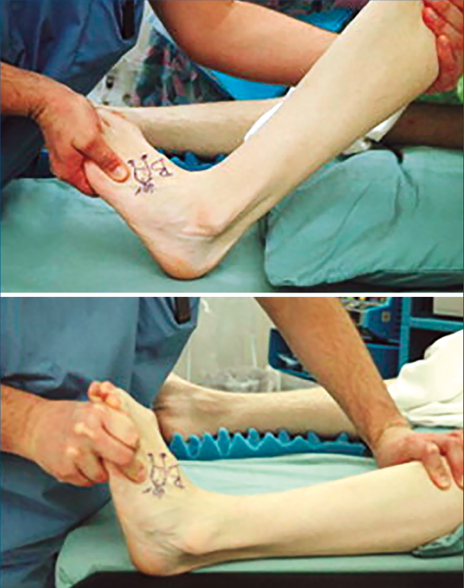 En nuestra opinión, estos resultados de equinismo detectados con el test A son debidos a que, al forzar la supinación y aducción del pie, se condiciona cierto grado de flexión de la articulación tibioperoneo-astragalina, hecho que conlleva un cierre de la articulación tibioperonea distal y que el astrágalo quede algo en varo dentro de la mortaja, impidiendo así la extensión normal del tobillo. Por este motivo, creemos que a pesar de que ambos test tienen una buena fiabilidad, sobre todo intraobservador, las mediciones en posición neutra reproducen de forma más veraz la fisiología articular del movimiento del tobillo.