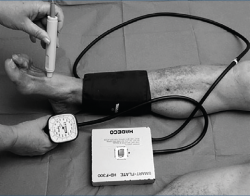 La vasculopatía puede afectar la irrigación de los pies. Puede ser una micro- o macroangiopatía que comporte un mayor o menor grado de isquemia distal. Además de los pulsos pedio y tibial (también es aconsejable valorar los proximales como el femoral y el poplíteo), la exploración más utilizada es el índice tobillo-brazo (ITB) (Figura 1).