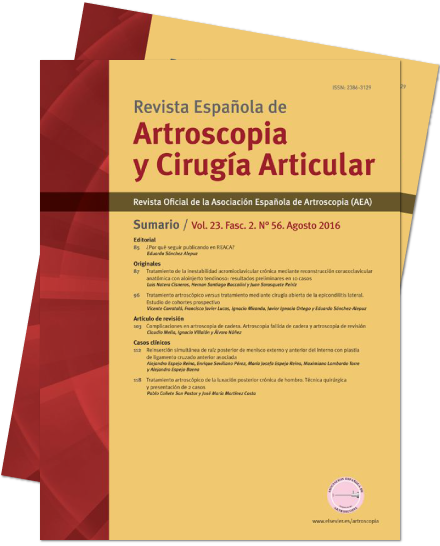 Todo proceso tiene sus ciclos, y cada ciclo está constituido por fases, Revista Española de Artroscopia y Cirugía Articular (REACA) es el segundo ciclo de una evolución que nace de nuestra primera revista Cuadernos de Artroscopia, fundada por los Dres. F. Galindo Andújar y Javier Vaquero Martín. Los objetivos y finalidades de REACA siempre han sido los mismos que impulsaron a los fundadores de Cuadernos de Artroscopia: «Comunicar nuestras ideas, trucos y, sobre todo, los resultados de nuestras investigaciones, para que mediante su difusión y conocimiento podamos avanzar, en definitiva, en beneficio de nuestros pacientes». En el segundo ciclo de nuestra revista nos marcamos como objetivos, seguir la línea de difusión del conocimiento y la investigación de la cirugía artroscópica, y ampliar nuestra área de difusión a la cirugía articular dentro de una gran plataforma editorial y en formato «on-line», para que la difusión de este conocimiento científico llegase a un mayor número de receptores de habla castellana, y a la vez fuera reflejo y órgano de expresión del funcionamiento científico de la institución que la respalda, la Asociación Española de Artroscopia, y de sus congresos y actividades docentes.