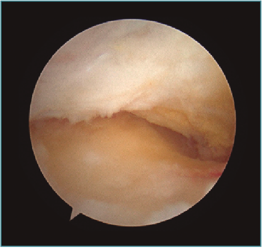 Figura 12. Condromalacia de cabeza de radio en un sujeto con epicondilitis asociada. Codo derecho con visión con óptica de 30° desde portal medial.