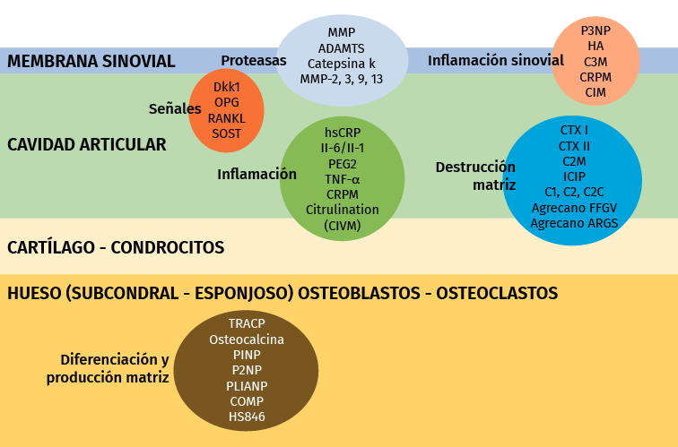 Figura 2. Marcadores más utilizados en la inflamación y la degeneración articular. Modificado de Lotz et al.(57).