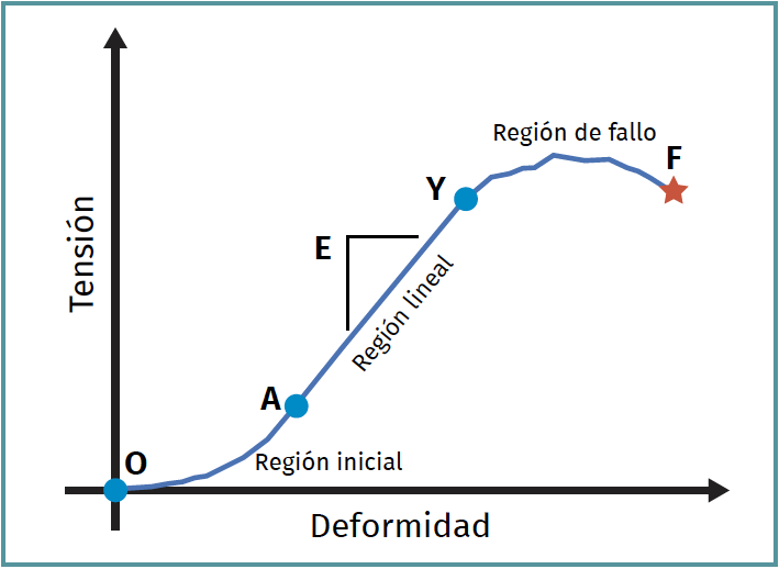 Las gráficas “tensión-deformidad” de los tejidos ricos en colágeno pueden dividirse en 3 regiones: 1) la región inicial (toe region en la literatura anglosajona); 2) la región lineal (comportamiento elástico); y 3) la región de cesión y fallo (comportamiento plástico) (Figura 1).