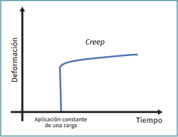 Figura 2. Gráfica de fluencia: propiedad del material que implica una deformidad creciente creep que se produce a lo largo del tiempo cuando un material está sometido a un esfuerzo constante.