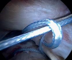 Figura 6. Se realizan puntos de tipo Lasso para asegurar que la porción larga del bíceps no se desgarra.