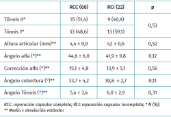 Métodos: estudio retrospectivo multicéntrico de una base de datos prospectiva de pacientes con diagnóstico de CFA tratados mediante CAC entre 2017 y 2022, con seguimiento mínimo de 3 años. Los pacientes se distribuyeron en 2 grupos según el manejo capsular. En el grupo caso se incluyeron los pacientes en los que se había realizado la RCC: rama vertical y capsulotomía interportal. En el grupo control se incluyeron los pacientes en los que se realizó la RCI: rama vertical sin reparación de la capsulotomía interportal.