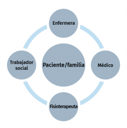 Los cuidados de la salud son proporcionados por diferentes profesionales (profesionales de enfermería, médicos y fisioterapeutas, entre otros) produciéndose, en ocasiones, colaboración y superposición entre estos cuidados.