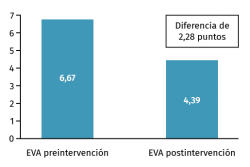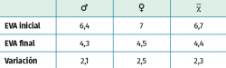 Figura 4. Escala visual analógica (EVA) pre- y postratamiento con ondas de choque extracorpóreas terapéuticas de tipo radial (rESWT) tras 5 sesiones.