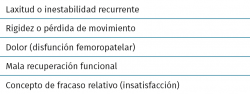 Aunque rara vez puede ser causa aislada de revisión quirúrgica de la plastia, a este grupo pertenecen aquellas situaciones con dolor persistente en relación con la intervención que pueden provocar la sensación de mal resultado por parte del paciente.