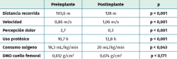 Los resultados del estudio demostraron mejoras significativas en la distancia recorrida y la velocidad de la marcha, el dolor, el consumo de oxígeno, así como en la puntuación del funcionamiento físico a los 14 meses después de recibir un implante femoral que permitió la carga distal (Tabla 1). Además, se incrementó la DMO del cuello femoral de los pacientes por la redistribución de cargas favorecida por el implante, aunque las diferencias no fueron estadísticamente significativas. En las Tablas 2 y 3 también se pueden observar los resultados en relación con la edad, la etiología y la calidad de vida.