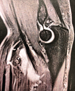La RNM puede ser más fácil de interpretar para aquellos menos acostumbrados al manejo de la ecografía y se ha considerado el gold standard para el diagnóstico de estas lesiones gracias a su gran sensibilidad y especificidad(25,17).