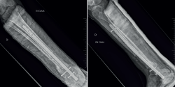 La sospecha en este momento es de pseudoartrosis asociada a una osteomielitis crónica.