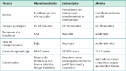 Tabla 1. Comparación entre las principales técnicas quirúrgicas para el tratamiento de la hernia discal lumbar